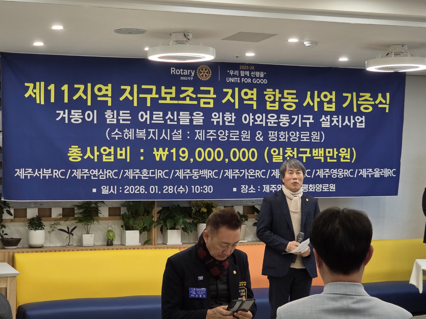 ![]() »çȸº¹Áö¹ýÀκұ³ÀÚºñ¿ø »êÇϽü³ÀÎ Á¦ÁÖ¾ç·Î¿ø°ú Á¦ÁÖ¿ä¾ç¿ø Á¤¿ø¿¡ ¾î¸£½ÅµéÀÇ °Ç° ÁõÁøÀ» À§ÇÑ ¿îµ¿±â±¸°¡ ¼³Ä¡µÇ¾ú½À´Ï´Ù Á¦ÁÖ¼ºÎ·ÎŸ¸®Å¬·´°ú, Á¦ÁÖ¿¬»ïRC, Á¦ÁÖÈ¥µðRC, Á¦ÁÖµ¿¹éRC, Á¦ÁÖ°¡¿ÂRC, Á¦ÁÖÇØ´ãRC, Á¦ÁÖ¿µ¿õRC, Á¦Áֿ÷¹RC µî 8°³ Ŭ·´ÀÌ ÈÄ¿øÇÏ¿© ¾î¸£½Åµé¿¡°Ô ¸Â´Â 5Á¾ÀÇ ¿îµ¿±â±¸°¡ ¼³Ä¡µÇ¾ú½À´Ï´Ù »ç¾÷ ±âÁõ½ÄÀº Áö³ 1¿ù 28ÀÏ, 3662Áö±¸ ¾ç¹®ºÀÃÑÀç´Ô, 11Áö¿ª ¼Ûº´¼±´ëÇ¥´Ô°ú 8°³Å¬·´ ´ëÇ¥´Ô, Á¦ÁÖµµ Ưº°ÀÚÄ¡ÇàÁ¤±¹ ±èÀοµ±¹Àå´Ô µîÀÌ Âü¼®ÇÑ °¡¿îµ¥ ÀÌ·ç¾î Á³½À´Ï´Ù. 8°³ RCÈÄ¿ø±â°ü ´ëÇ¥´Ô°ú ÇÔ²² Çù·ÂÇØÁֽŠÁ¦ÁÖÆ¯º°ÀÚÄ¡µµ ÀÚÄ¡ÇàÁ¤°ú °°æÇʰúÀå´Ô, ±è¿µ¾Æ ¹Î°£Çù·ÂÆÀÀå´Ô²²µµ °¨»çµå¸³´Ï´Ù